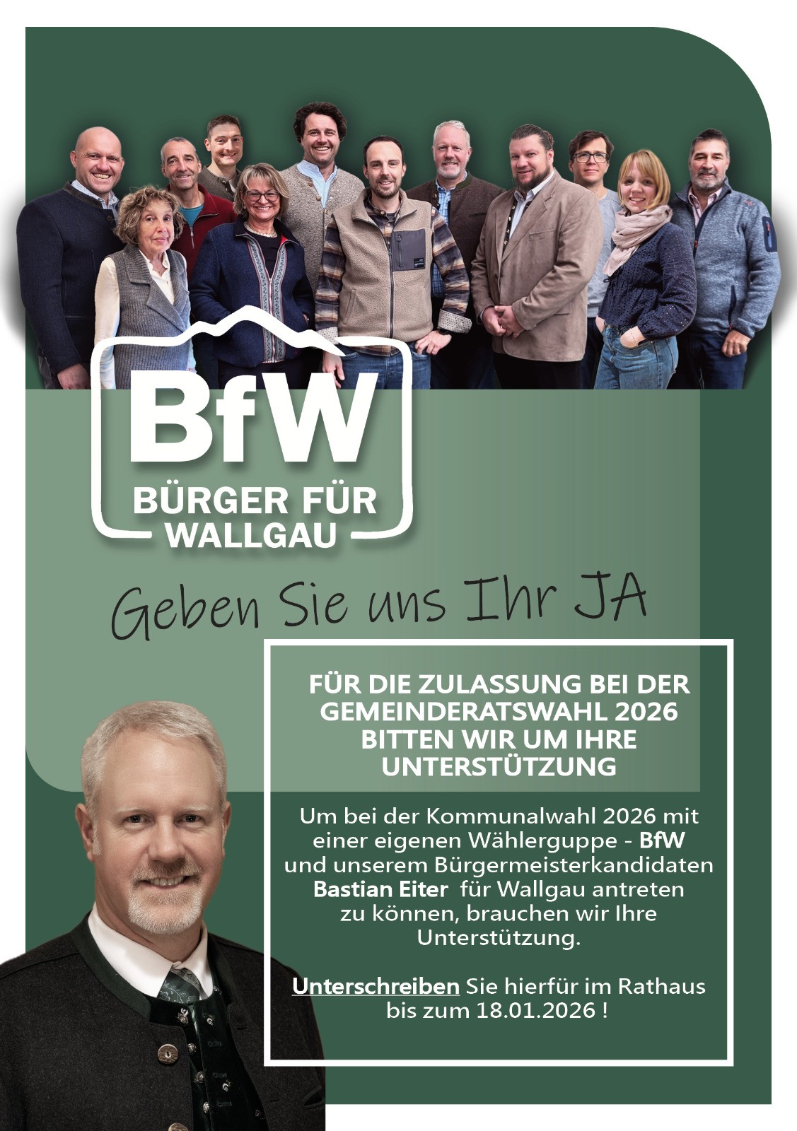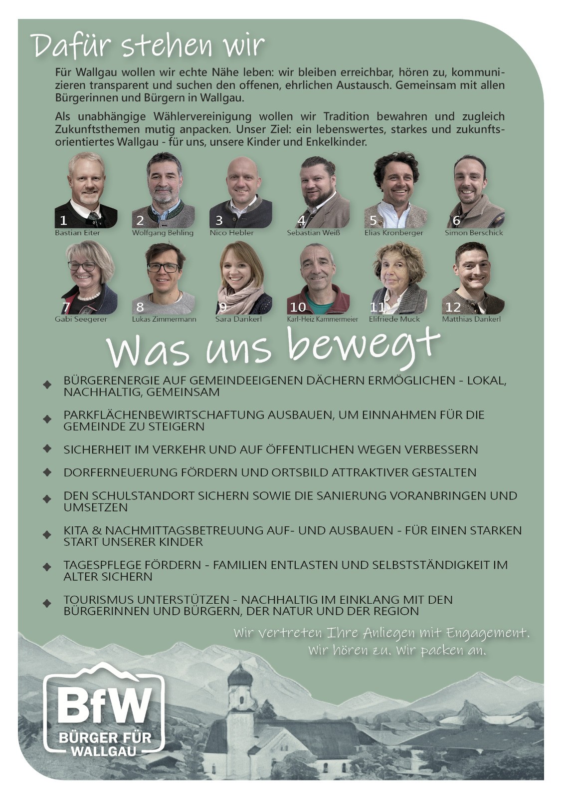 Kandidaten der Bürger für Wallgau zur Kommunalwahl 2026