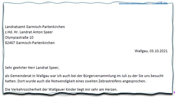 • Erfolgreicher Einsatz für den Zebrastreifen beim Landrat